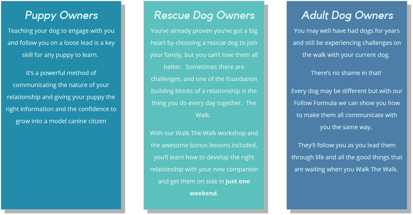 “How can we help dog owners get a significant improvement in their day to day lives with their dogs in the shortest amount of time?”